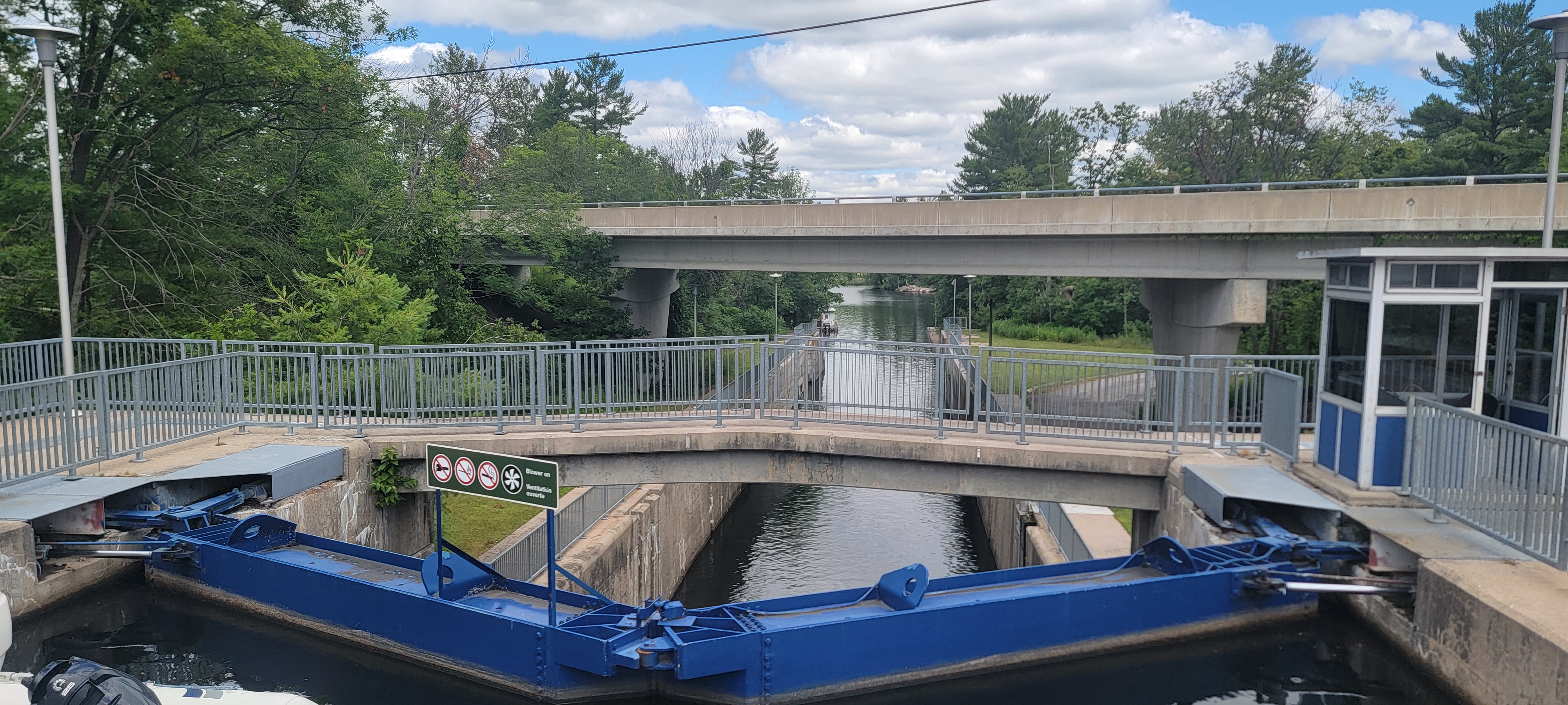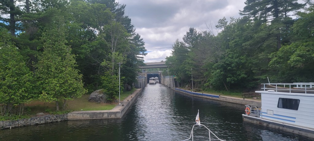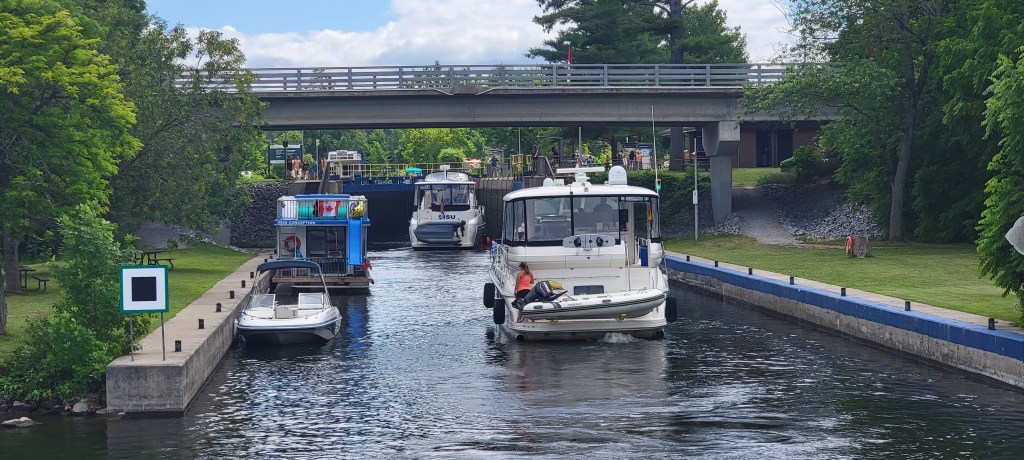 After that we got to Lock 28 – Burleigh Falls. By this time we were in the same lock cycle as two other cruisers, but all three of us got into the lock without issue.