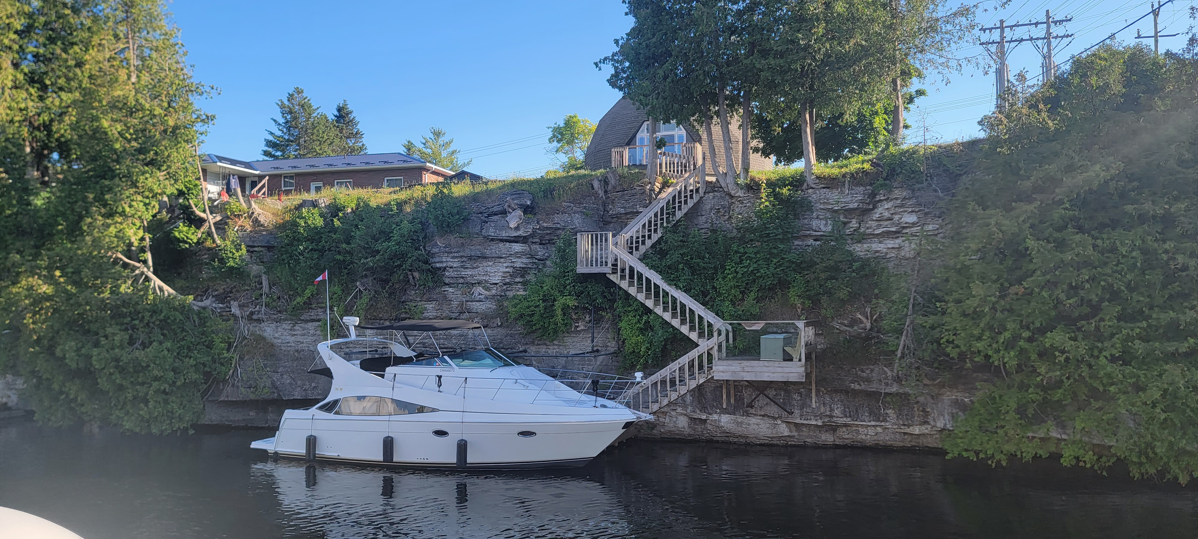 We settled in for a slow cruise to Fenelon Falls through some beautiful lake country. Entering Fenelon Falls was amazing. The canal from the lake to the lock is a solid granite channel lined with houses and docks. While narrow, it was as much as 70 feet deep within 20 feet of the shoreline.