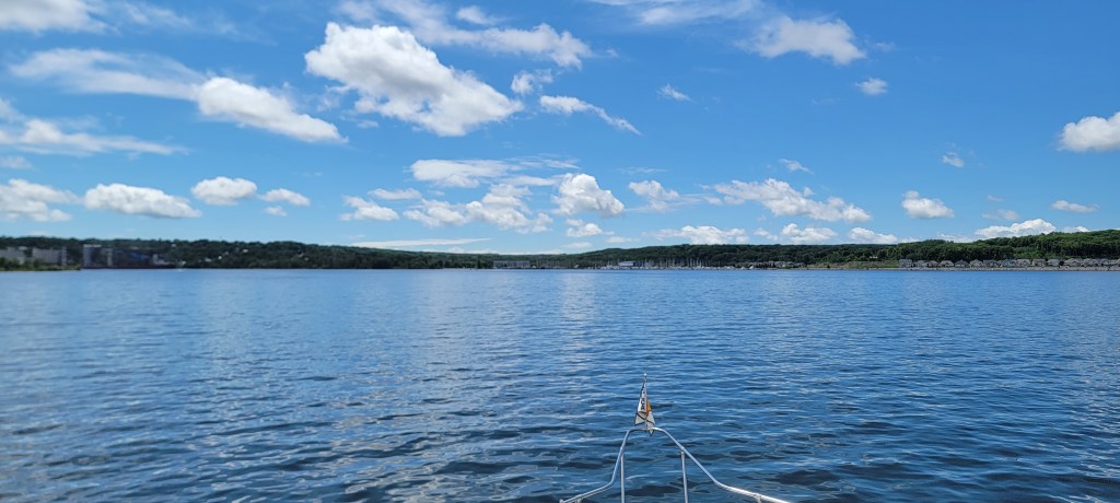 Locking through was easy. When we cleared the lock, we followed the narrow channel out to wider water and made our way the 11.5 miles to Midland. It felt good to have wide and deep water for the first time since Lake Simcoe.