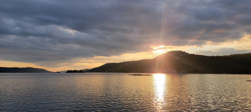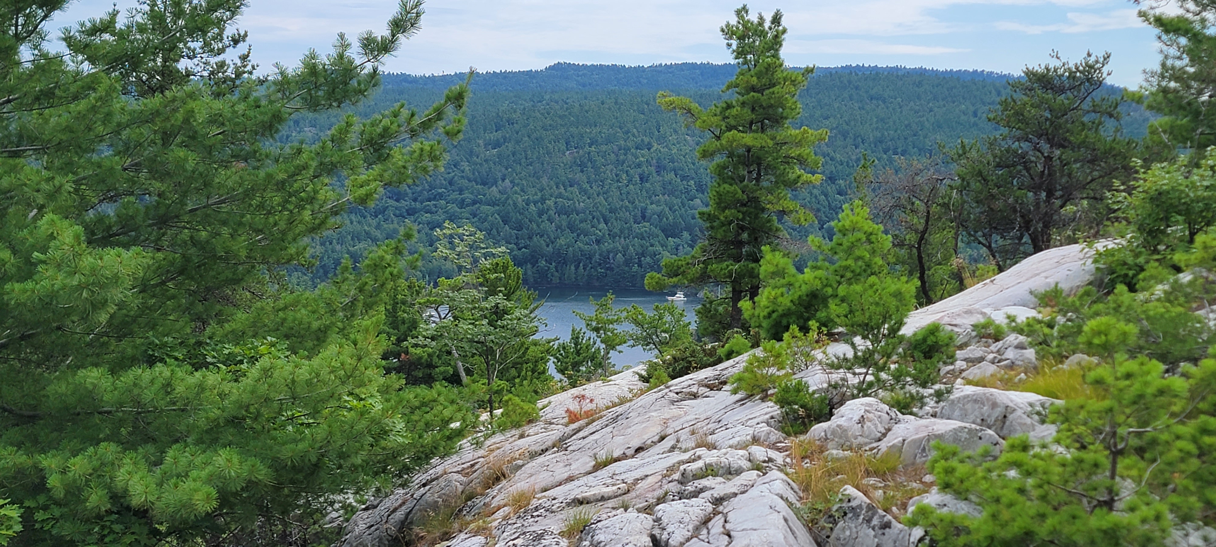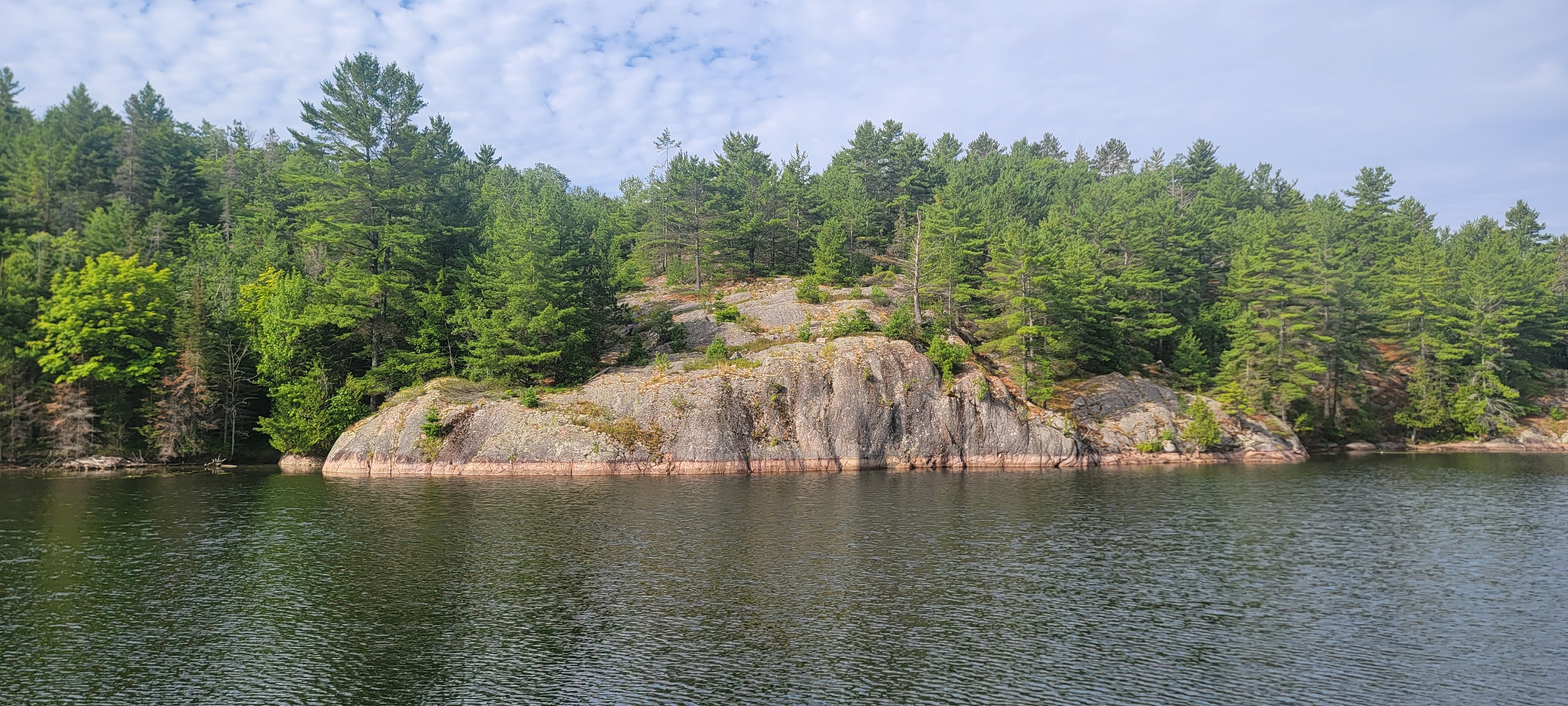 Killarney is what separates Georgian Bay from the North Channel, and we were excited to make the transition. We cruised across Frazer Bay and entered Baie Fine, one of the largest freshwater fjords in the world. I had never been in a fjord before, and now I want to see them all. Tall walls of rock towered over the water on both sides of the boat. The total distance is about seven miles inland with anchorages along the way and ending in The Pool. We took the big boat about halfway in, dropped our anchor,…and dragged. It turns out we dropped our anchor on a fallen tree, which came up when I pulled the anchor up to reset it. I couldn’t lift the anchor with the 15 foot tree on it, so Owen had to help. Once the tree was back in the water, we tried again, and we had a nice and snug anchor on our second attempt.