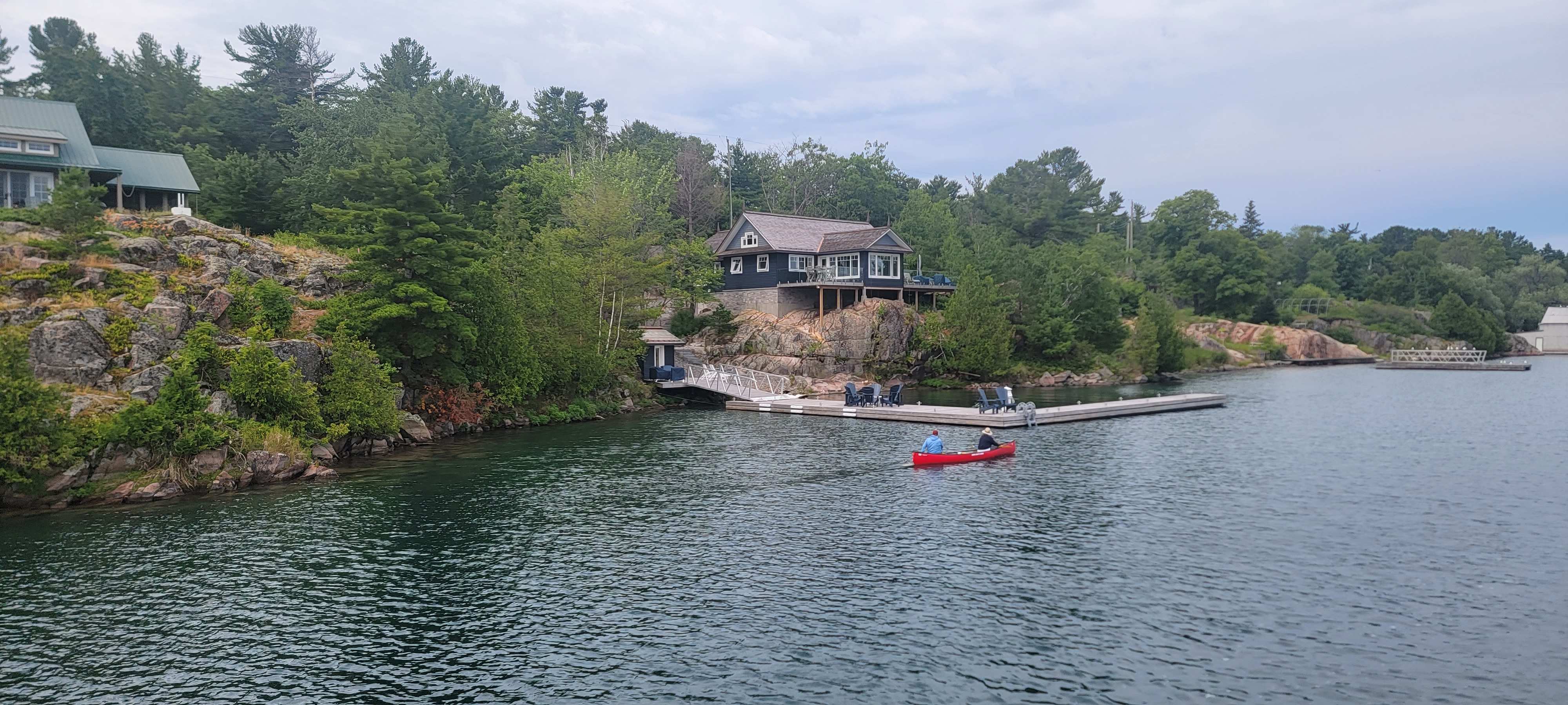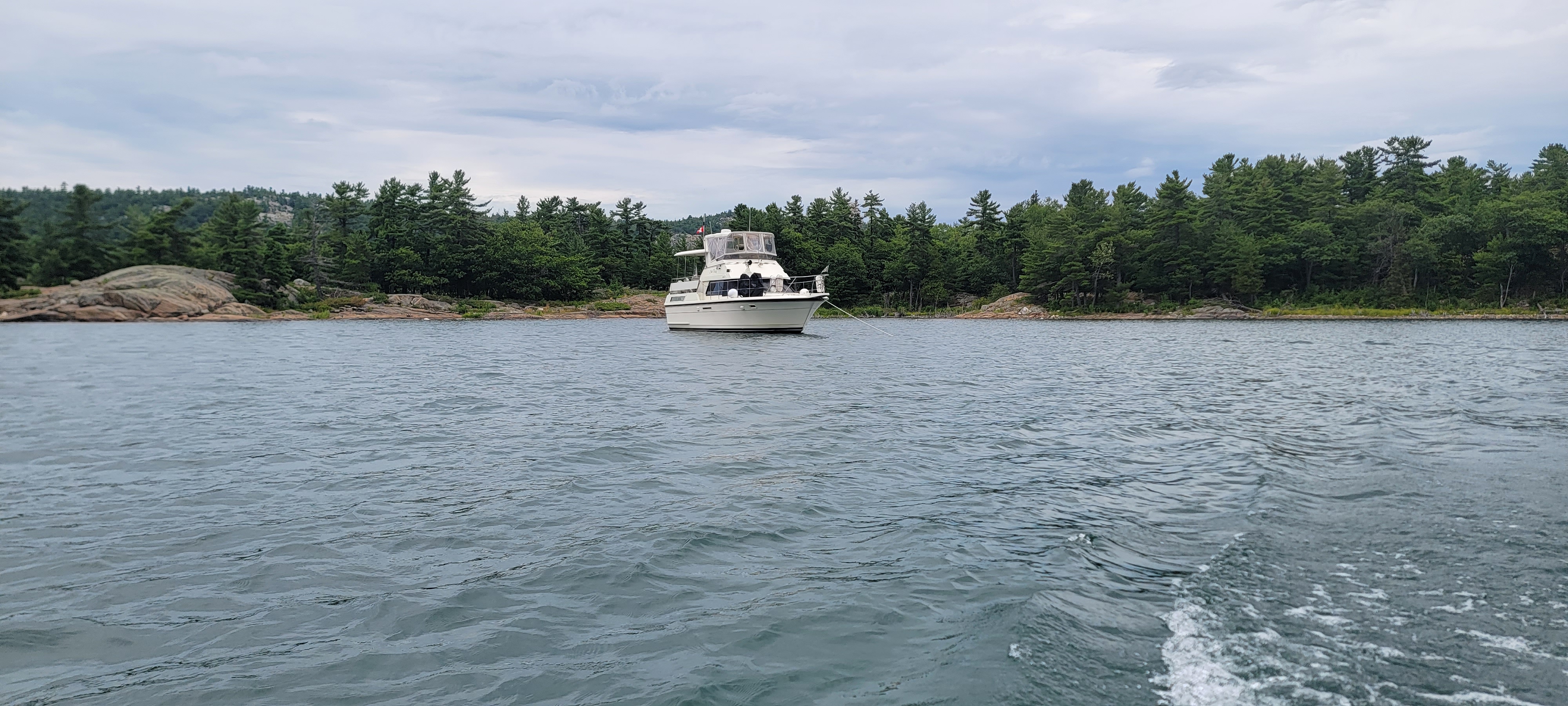 We left our perfectly quiet anchorage and reconnected with the small craft channel that is marked just outside of all the rocky areas along the shoreline. We were fortunate to have perfect weather for this stretch. We turned in as we passed The Chickens (with 30,000 islands in this area, they had to be creative) and entered Beaverstone Bay. We meandered around deserted, tree-filled islands and saw boats tucked away in the most private of anchorages.