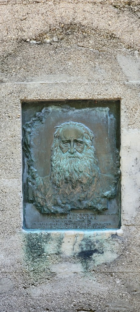 After the lighthouse, we followed the road to the cabin of Feodor Protar. He was a man who came to the island to start a new life and eventually was known as a benevolent man who had a gift for pharmacology. He was buried nearby, and his grave was the destination of pilgrimages for many years after his death.
