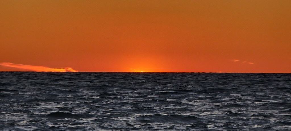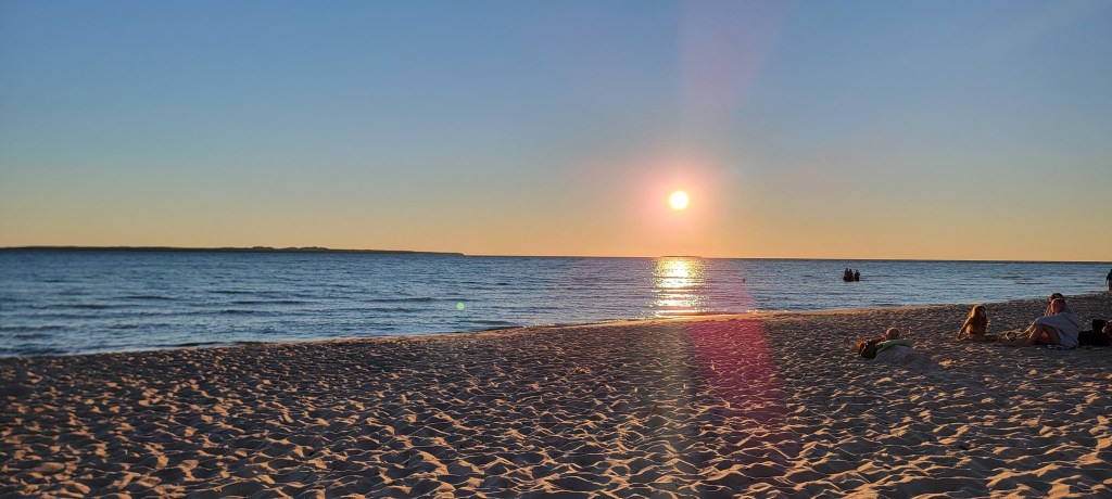 We drove over to Donegal Bay Beach to watch the sunset. We knew it would be our last sunset over water on our Loop. We ended up having to walk down the beach a little way so the sun wouldn’t set over the small island to the west of Beaver. It’s always something! The sunset turned out to be just right, and we headed back to our car. We drove to the eastern side of the island where our marina was, and we were in for another treat: the sturgeon supermoon!