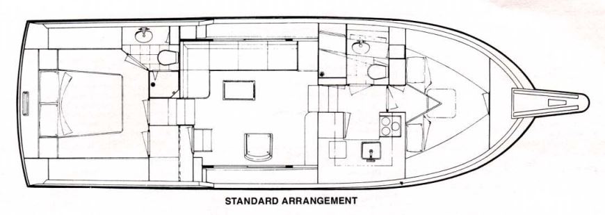 For the boat geeks, you can find a copy of the original brochure here. Here are some stats (we have the diesels) and our floor plan.